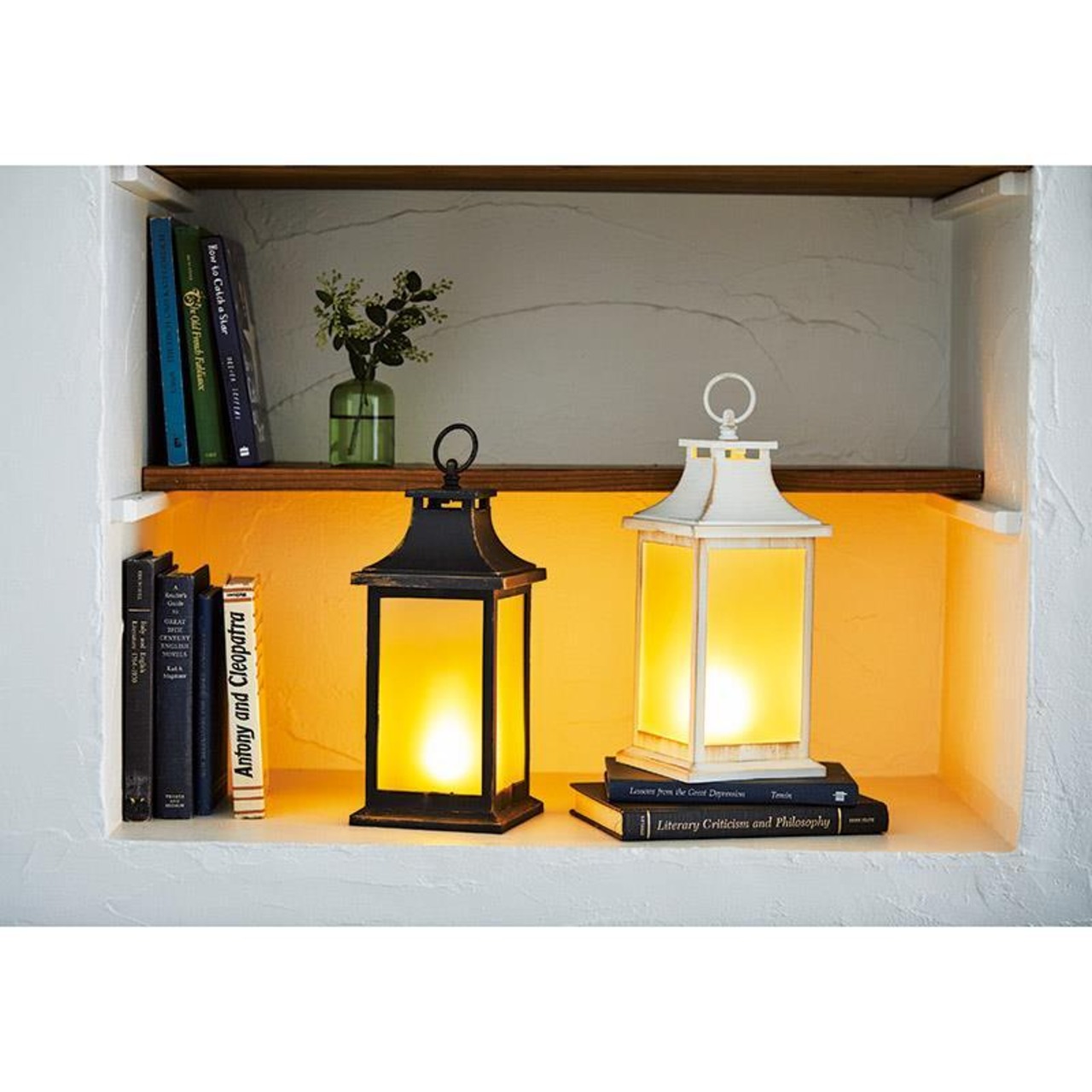 すりガラスの向こうでLEDが焚火の炎のように明るく揺らめくLEDランタン。手軽に非日常感を演出できるアイテムです。LEDなので小さなお子様やペットが触れても安心。置いても吊るしても使えるのは取っ手の付いたランタンならでは。プラスチック製だから軽くて持ちやすい!連続点灯時間:約100時間。
