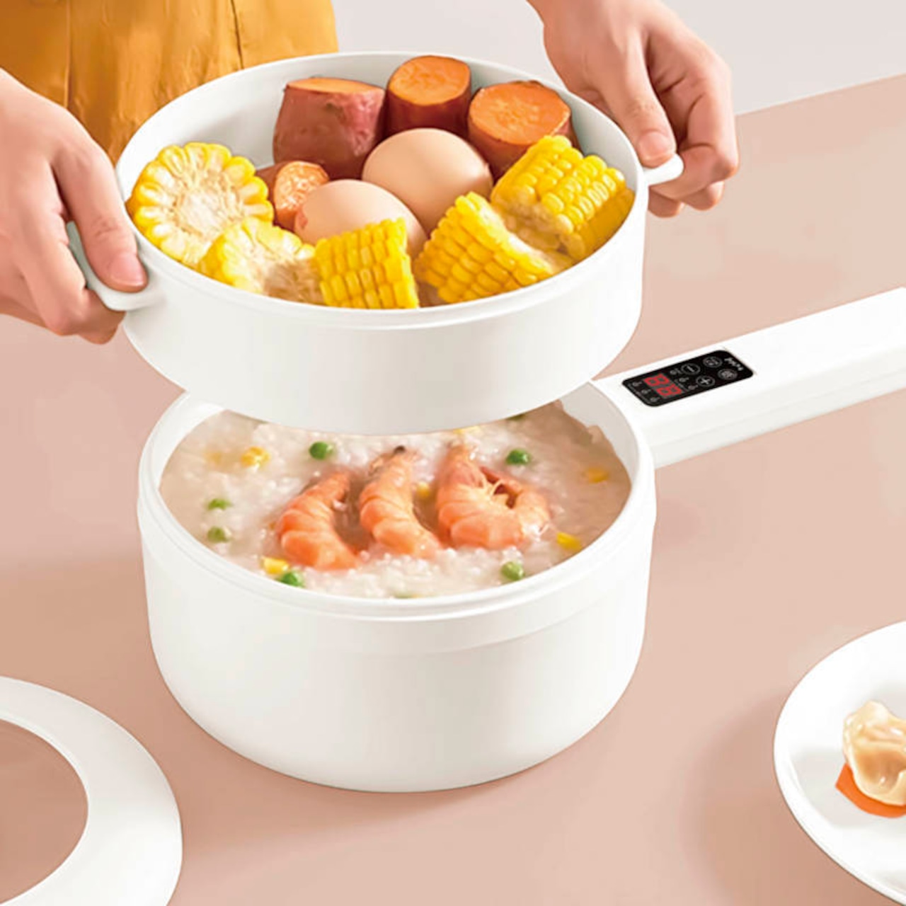 ゆでる、焼く、煮る、炒めるがこの1台で!・ガスコンロ・IH不要・火を使わないので安心。・こげつきにくいセラミックコーティングでお手入れカンタン。・サーモスタット機能・火力5段階調節