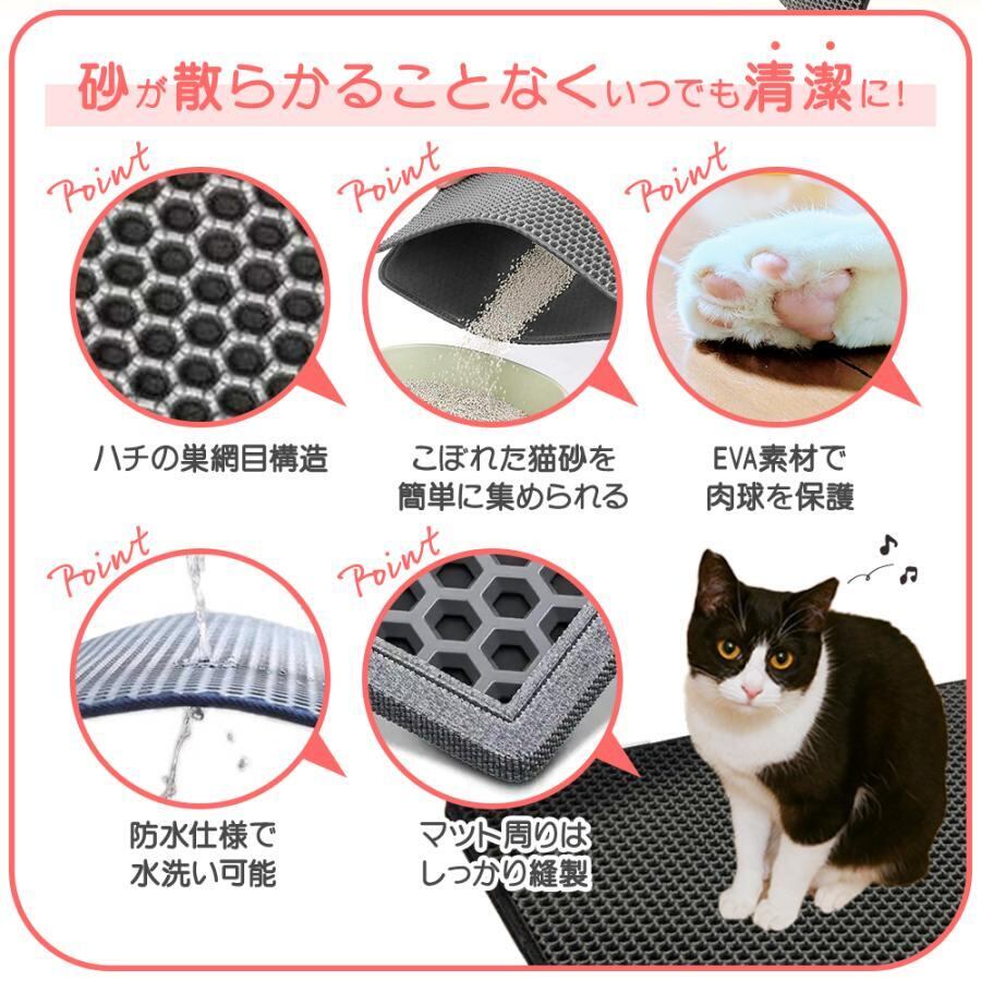 猫砂の飛散を防ぎ、猫のトイレの周りを清潔に保ち、清掃時間を節約します。