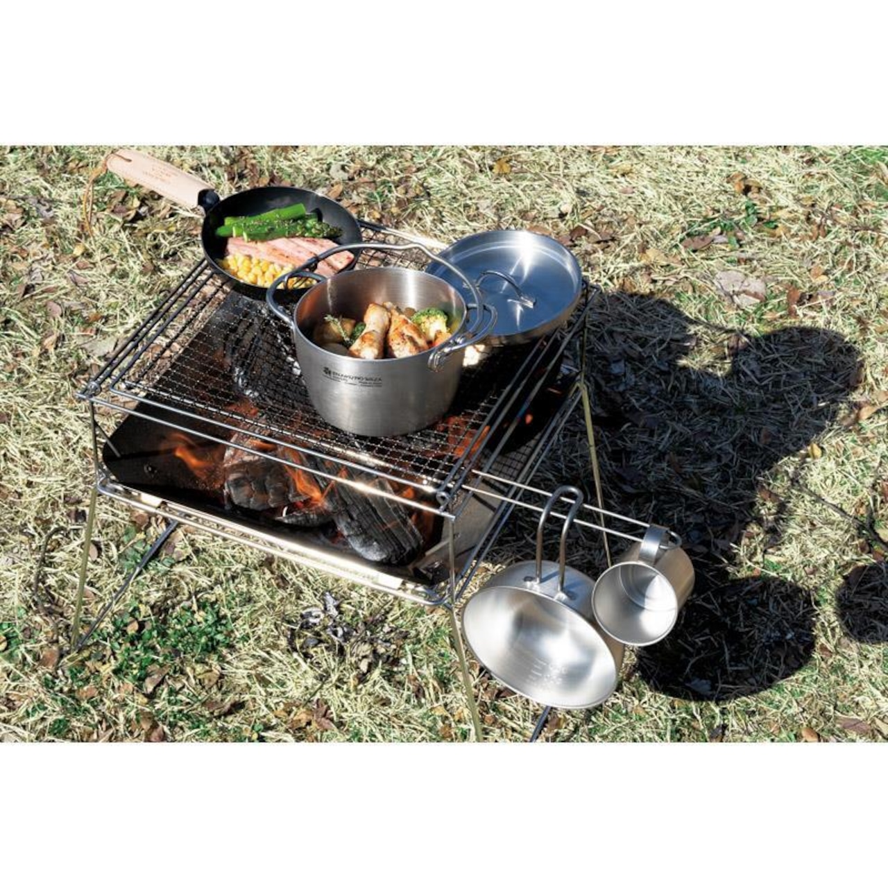 鍋の本体は、熱伝導性に優れたアルミニウムを耐久性と保温性に優れたステンレス鋼でサンドした 層構造( LAYERS)。IHはもちろん、ガス火やオーブン調理、アウトドアでの焚火や炭火にも対応します。使い始めのシーズニング(油慣らし)の必要が無く、蓋はステンレス mm厚と重いので、アウトドアでのご飯の炊き込みや煮込み調理に最適です。ツルは着脱式でアウトドアだけでなく、インドアでも活躍します。