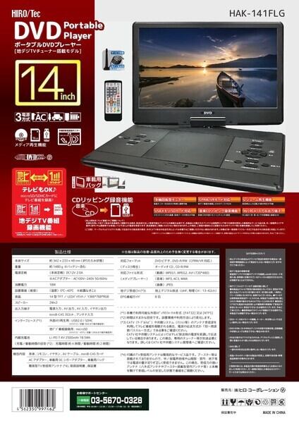 14インチフルセグDVDプレーヤー HAK-141FLG