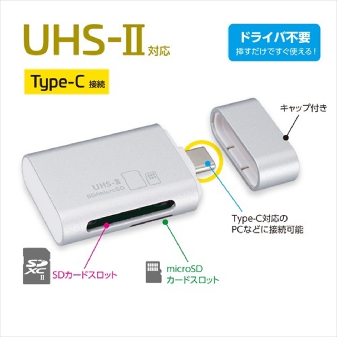 ナカバヤシ UHS-2対応Type-CカードリーダーW/シルバー CRW-C3SD91SL