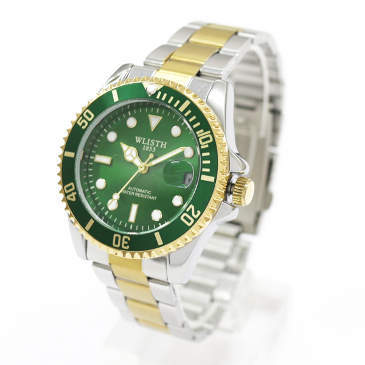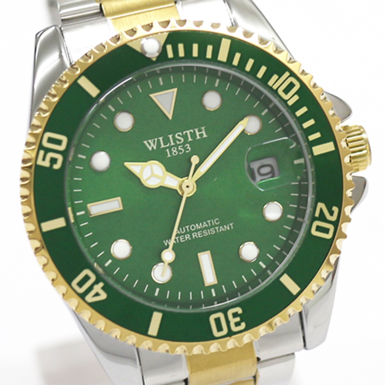 自動巻き腕時計 ベゼルと文字盤のカラーが統一されたメタルウォッチ 機械式 WSA030-GRN メンズ腕時計