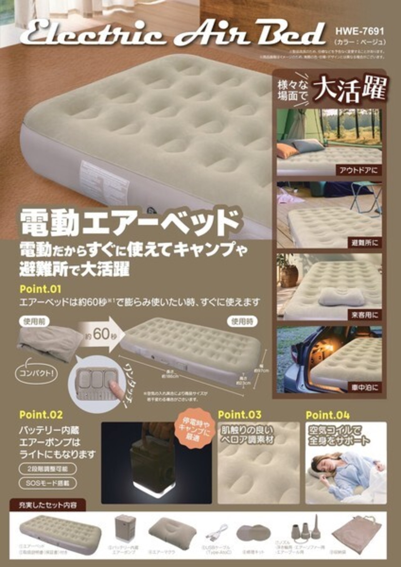 電動だからすぐに使えてキャンプや避難所で大活躍