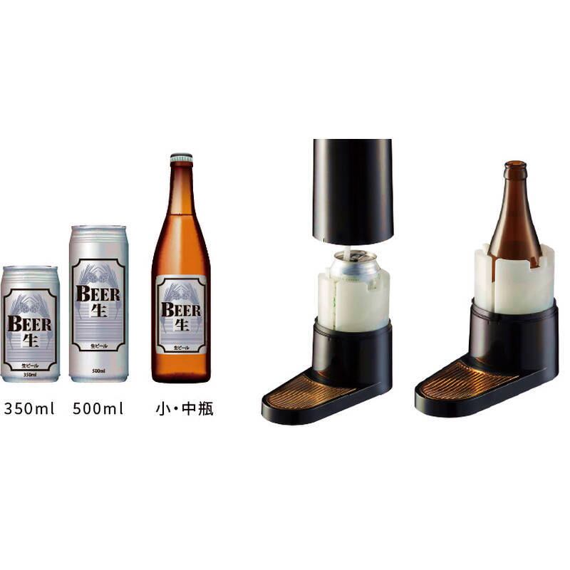各社の缶ビール、瓶ビールに対応した全体加圧方式を採用超音波がうまい泡を作り出す! スタンドビールサーバー・キンキンを味わえる!氷点下保冷剤を付属・充電式バッテリー内蔵で、どこでも持ち運んで使える・簡単メンテナンス、洗いやすく衛生的