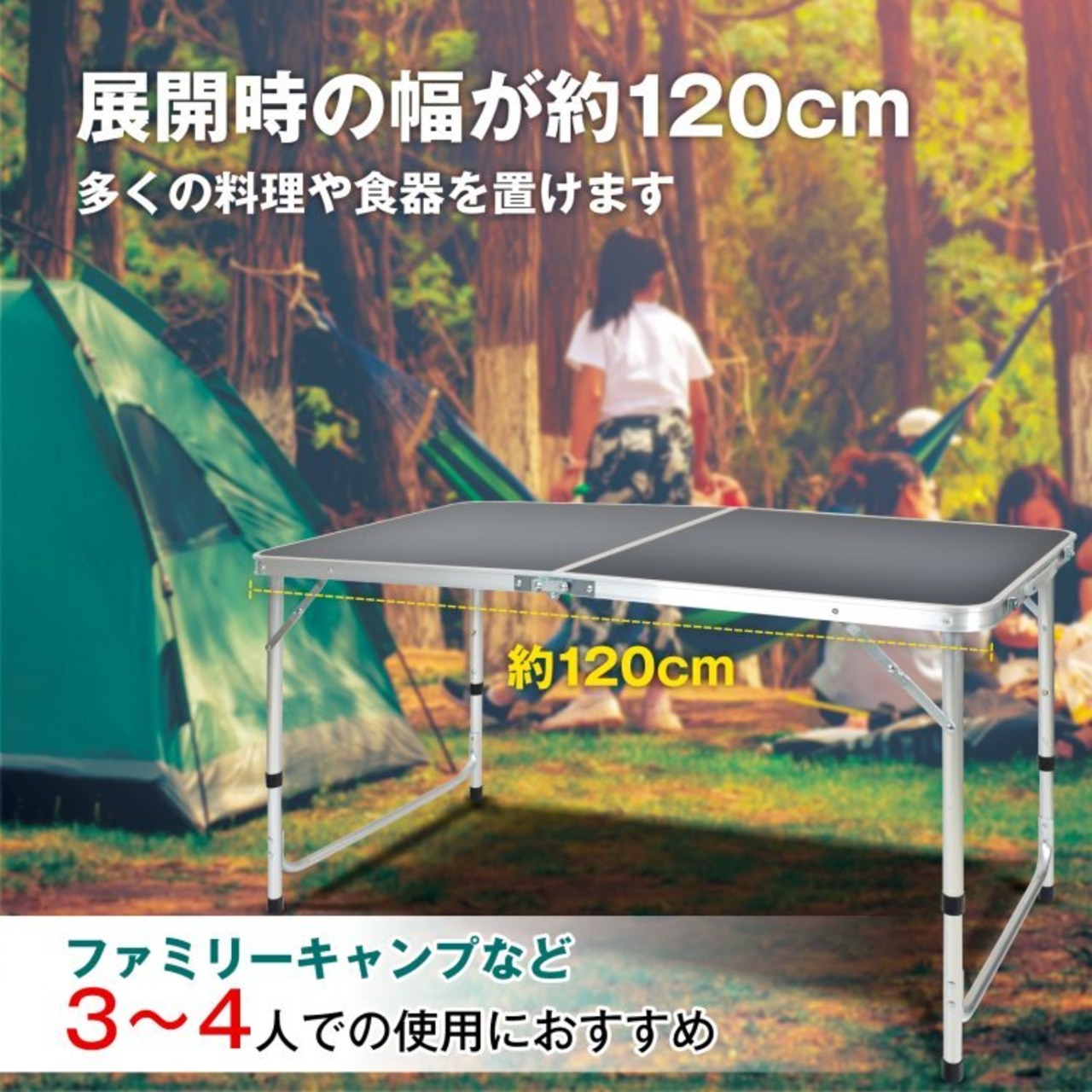 アルミ アウトドアテーブル折りたたみ式120cm 高さ調節可能 折り畳みテーブル 防水